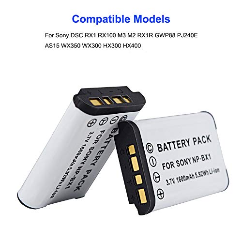 CITYORK NP-BX1 la Sostituzione Della Batteria (2-pack) e Caricabatterie LCD Doppio per NP-BX1 / M8, Cyber-Shot DSC-HX80, HX90V, HX95, HX99, HX350, RX1, RX1R II, RX100 (II/III/IV/V/VA)