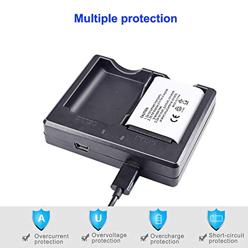 Doppio caricatore rapido: ricarica rapidamente 2 batterie contemporaneamente da qualsiasi fonte di alimentazione USB. Ingresso caricabatterie: Mini USB e micro USB 5 V/2 A, uscita: 4,2 V/0,8 A. Indicatore LED: il LED si illumina di rosso quando è in carica;