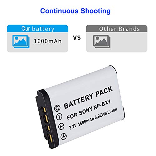 Batteria ricaricabile NP-BX1: batteria agli ioni di litio da 3,7 V 1600 mAh 5,92 Wh, integrata ad alta capacità a 6 celle, ricaricabile di alta qualità agli ioni di litio con effetto memoria e cicli di lavoro multipli. Elevata capacità per una registrazione video più lunga e un maggior numero di scatti fotografici.