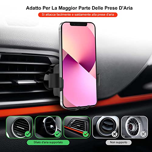AMPIA COMPATIBILITÀ: Questo porta telefono auto può essere utilizzato per la maggior parte delle prese d'aria orizzontali e verticali di dimensioni standard e dispone di poggiapiedi e braccioli regolabili, che possono supportare facilmente telefoni cellulari da 4-7 pollici e risolvere il problema di compatibilità delle dimensioni di vari smartphone. È compatibile con tutti i modelli di iPhone e telefoni Android, come iPhone 13, 13 Pro, Huawei, Samsung, Xiaomi, eccetera.