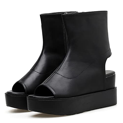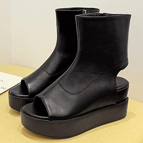 Ciuyurra Classico Estate Shoes Donne Piattaforma Punta aperta Gladiator Sandals Rivetti Increasing Tacchi a Zeppa Ankle Wrap Cosplay Footwear Pleated Black-PU Size 39
