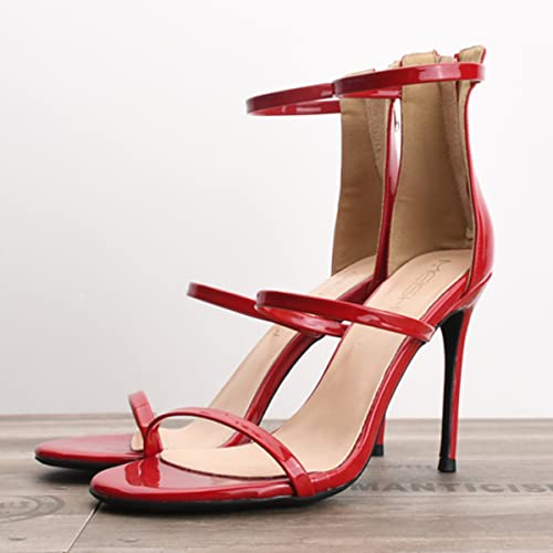Ciuyurra Donna Elegant Sandali Tacchi a Spillo Alti Punta Aperta Cinturino alla Caviglia Estate Scarpe Basic Sandali Festa Sposa Heeled Patent Red-10cm Size 46