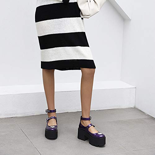 Ciuyurra Moda Donne Gothic Pumps Piattaforma Cinturino alla Caviglia Cosplay Shoes Chunky Heels Lolita Shoes Flatform Party Shoes Round Toe PU-Black Dimensione 39
