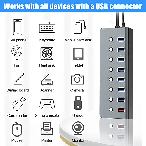 Interruttori indipendenti e indicatori LED: le 7 porte dellhub dati USB 3.0 hanno interruttori indipendenti e indicatori LED blu. Ogni porta USB è controllata individualmente senza influenzarsi a vicenda. Puoi gestire facilmente un gran numero di dispositivi USB.