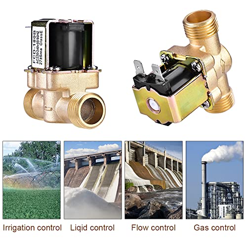 CJBIN Elettrovalvola 1/2, Elettrovalvola a Solenoide Normalmente Chiusa, AC220V/240V Elettrovalvola in Ottone, Pressione DellAcqua da 0,02-0,8 Mpa, per Il Controllo Dellacqua, Irrigazione