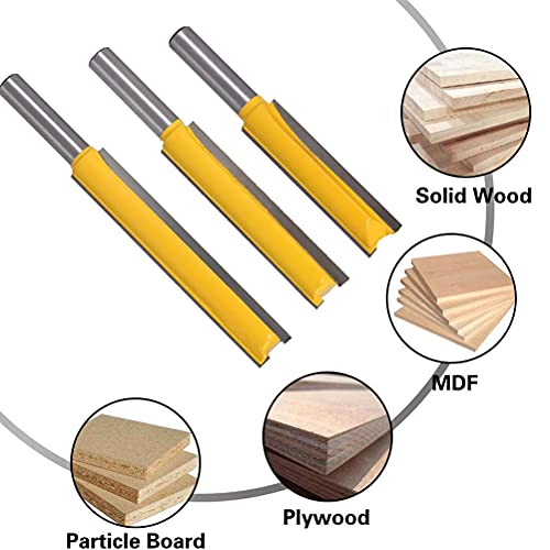 CJBIN 8MM Gambo Extra Lungo Fresa, 3 Pcs Punta da Fresatrice Verticale a Taglienti Diritti per Scanalature Frese per Legno