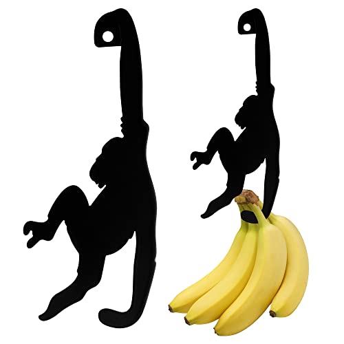 CJBIN 2 pezzi porta banana scimmia per banane, ferro cromato, per banane, banane, gadget pratici, divertenti da cucina per banane o altri articoli da cucina leggeri