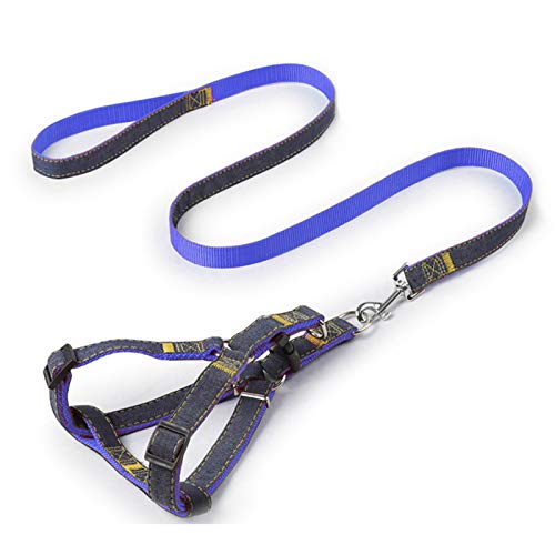 CJFael - Pettorina per cani, in denim, spessa e resistente all'usura, con cinghia toracica, guinzaglio per cani e cuccioli, colore: Blu 1 S