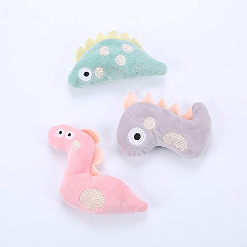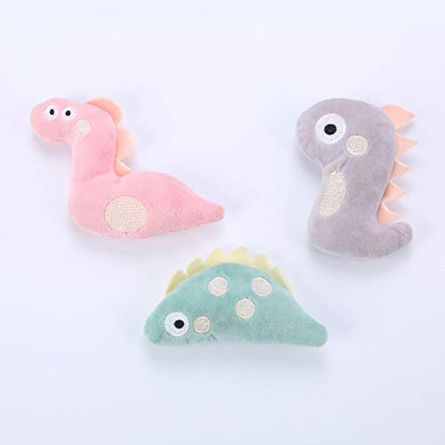 CJFael Sound Squeaky Interactive Toys for Pets, 3Pcs Plush Snake Dinosaur Catmint Catnip Anti-Bite Chewing Toy for Pets Cats Kitten Pink Snake+Grey Dinosaur+Green Fish