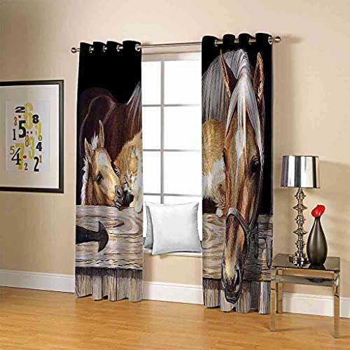 CJGVKS Tende Oscuranti Termiche Isolanti Tenda Oscurante con Occhielli cavallo animale stalla cavallo per Casa Moderne Camera da Letto Soggiorno Hotel 2 Pannelli, L140cm x A264cm
