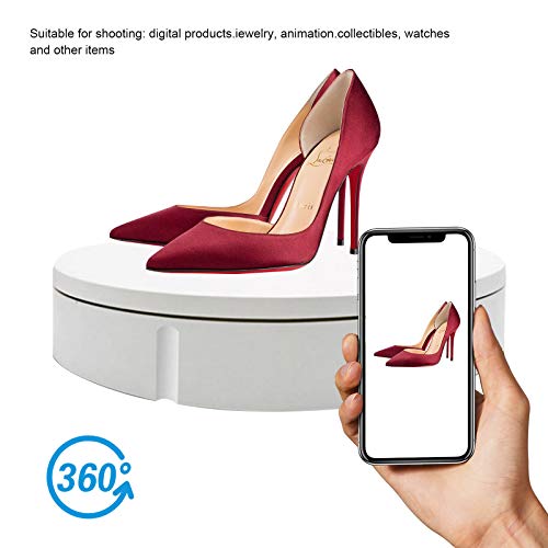 【Caratteristiche:】: questo espositore rotante ha una capacità di carico di 11,8 pollici e 100 kg. Telecomando, velocità fissa 60 secondi, velocità telecomando 22-30 secondi. Riprese video panoramiche, display silenzioso. Puoi utilizzare la vetrina per esporre, mostrare prodotti, realizzare video o creare oggetti artigianali.