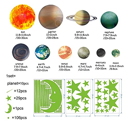 Regalo perfetto per bambini e amanti degli astronomi: questo adesivo da parete fluorescente del sistema solare Planet è un regalo speciale per ragazzi o ragazze. Applicabile su superfici lisce come pareti, finestre, specchi, frigoriferi, porte, armadi, soffitti, ecc. Scena romantica.
