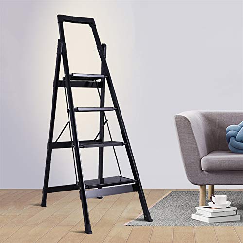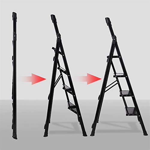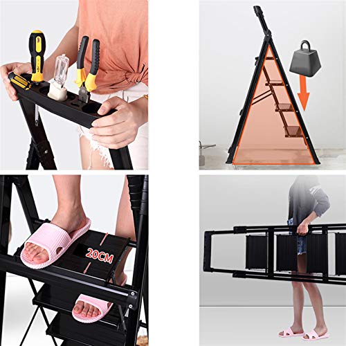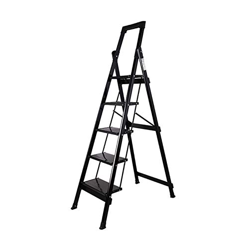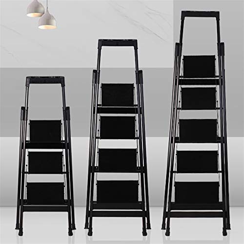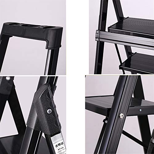 CJXing-stepladders Gradini Pieghevoli in Lega di Alluminio Nero, Durevole Durevole 3-4-5 Gradini Scala Patio Giardino Scale Multiuso Scala di Ingegneria per Esterni(Size:49.3 * 78 * 168CM,Color:Nero)