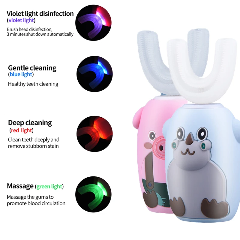 CkeyiN Cartoon Pattern U Shape Automatic Teeth Brush Waterproof Vibration Teeth Cleaning 4 Modes Toothbrush Children Dental Care