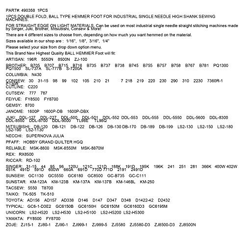 CKPSMS Marca -# 490358 1 PZ PALLA HEMMER FOOT Adatto per JUKI DDL555,5550,8700,CONSEW BROTHER B755 B757 SINGER (490358 1/8")