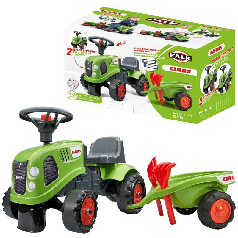 Trattore a piedi Falk Claas Ogni bambino può esercitare il proprio senso dell'equilibrio su questo piccolo trattore verde. Nel piccolo cargo box puoi portare tutto con te: dalla coperta a casa alla sabbia per la sabbiera all'esterno. Il trattore viene fornito con un piccolo kit che permette la personalizzazione della targa. Questo trattore è pensato soprattutto per i bambini più piccoli di età compresa tra 1 e 3 anni. Carico massimo fino a 25 kg.