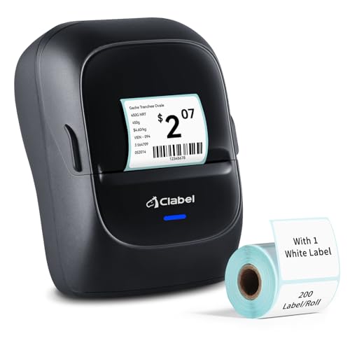 CLABEL Etichettatrice Etichette Adesive, 221B Stampante per Etichette Adesive Bluetooth Termica Compatibile con iOS e Android, Mini Etichettatrice Portatile per Ufficio a barre trasporto cavo Codice