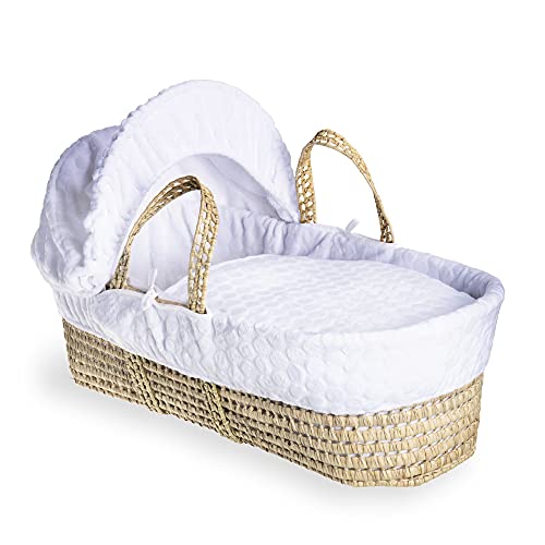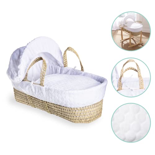 Cestino in palma naturale intrecciato a mano: un tradizionale e robusto cesto in vimini intrecciato a mano con foglie di palma biologiche. Il design intrecciato migliora il flusso d'aria all'interno del cestino garantendo il comfort del bambino.