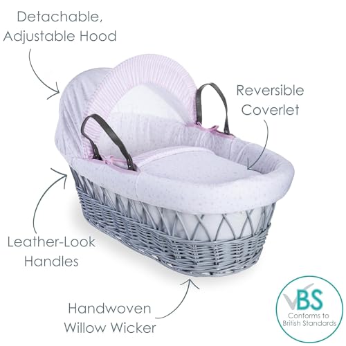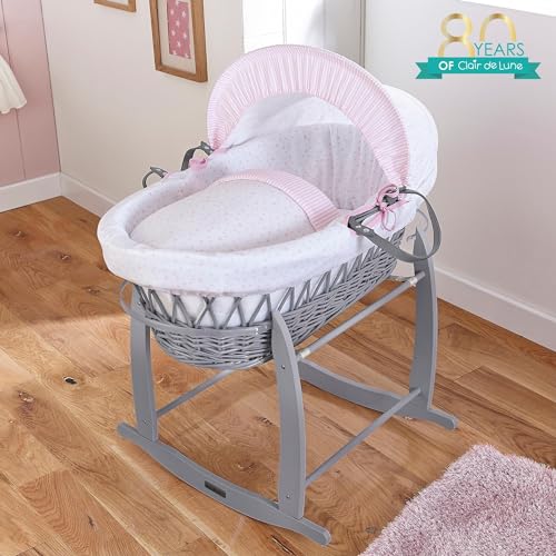 Clair de Lune - Cesto porte-enfant in vimini grigio (Rosa, Stelle E Strisce)
