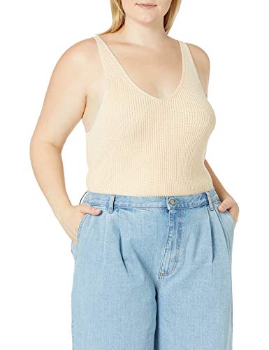 The Drop Claire Canotta in Maglia con Texture a Testine e Scollo a V da Donna, Sabbia, 3XL Plus