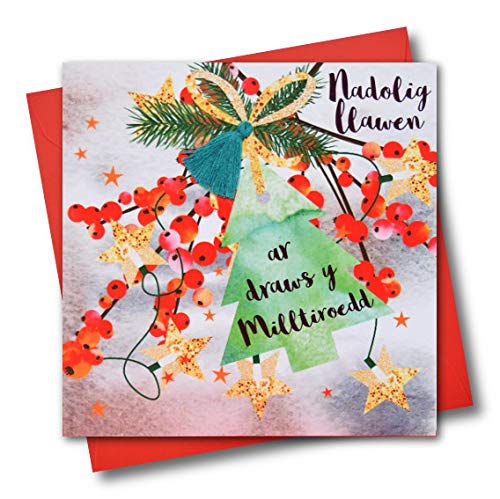 Parte della gamma di lingua gallese nappa Natale. Stampato e rifinito a mano in il Regno Unito con bella colorata nappa decorazioni.
