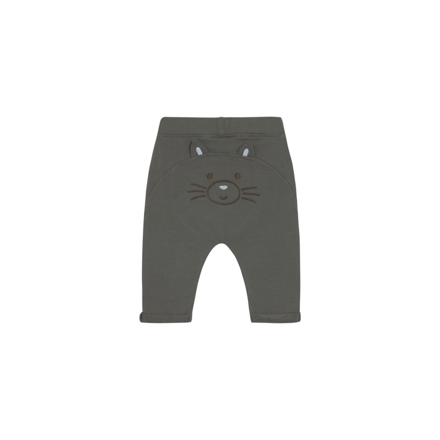 Dettagli del prodotto: Pantaloni da ginnastica Vita elastica Tasche anteriori Volto di gatto ricamato con orecchie cucite sul retro Colore: cavolo nero green Materiale e cura: Materiale: 97% cotone, 3% elastan Certificazione GOTS: 199845 Lavabile fino a 30 °C Non immergere Si modella quando è bagnato Non asciugare alla luce diretta del sole