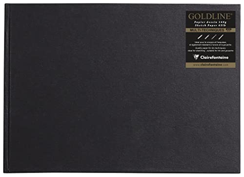Clairefontaine 134244C - Taccuino Goldline 64 fogli cucito e incollato (formato orizzontale ) 21x29.7 cm carta avorio 140 g, copertina rigida nera