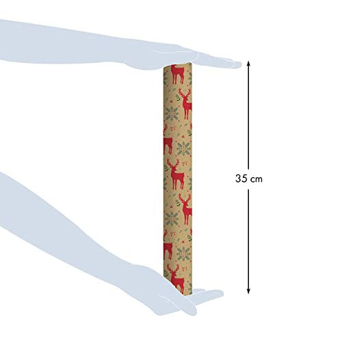 Clairefontaine 223884C - Bobina di carta da regalo Tiny Rolls 5 x 0,35 m (speciale piccola) 70 g in carta kraft 100% riciclata, Renne rosse