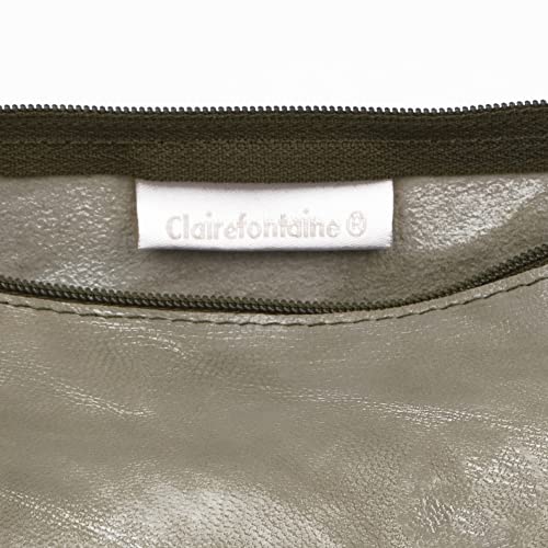 Clairefontaine - Ref 410176C - Astuccio in pelle Tie & Dye - 22 x 5,5 cm, realizzato in vera pelle di agnello, cerniera in metallo con estrattore in pelle, colore: verde autunnale