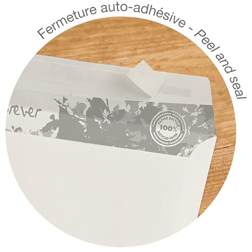 Clairefontaine 610645C - Confezione da 50 Buste Forever 100% riciclate DL-110x220mm 80g Autoadesive - 80g/m² - Finestra Carta Cristal 45x100 (posizione 20/20)