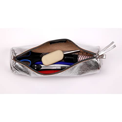 Clairefontaine 8688C Trousse rotonda in vera pelle, 22 cm x 5.5 cm di diametro, color Argento (Argent)