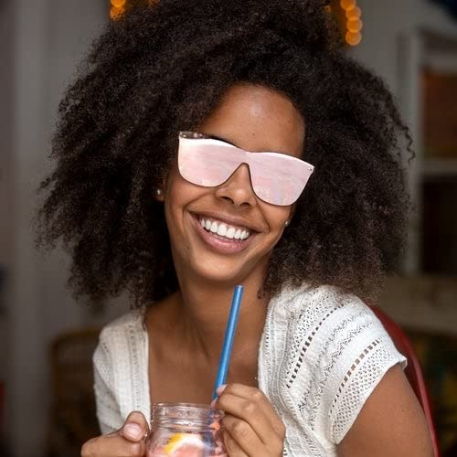 Occhiali da sole design unisex e rifinitura high-end con montatura avana, aste in acciaio inossidabile dorate e lenti in nylon rosa.