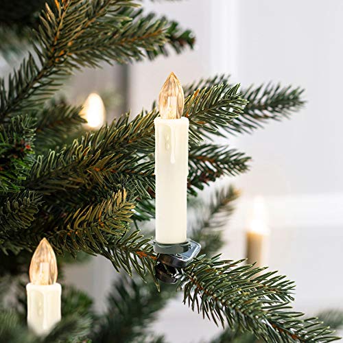 Clanmacy 30x candele LED Candele natalizie wireless con timer telecomando, candele senza fiamma dimmerabili, catena di luce bianca calda per albero di Natale Decorazione natalizia