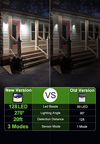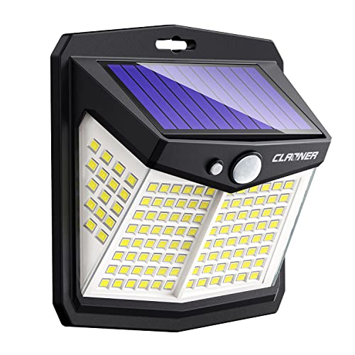 Claoner Luce Solare LED Esterno, [128LED 1 Pezzi] Faretti Solari a LED da Esterno 270° Illuminazione Luci Solari con Sensore di Movimento per Giardino