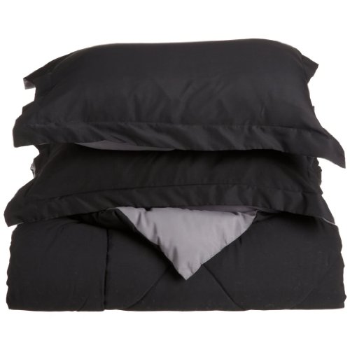 Clara Clark a Goose Down Alternative Reversible 3-Piece Comforter Set con 2 federe, Black/Gray, King
