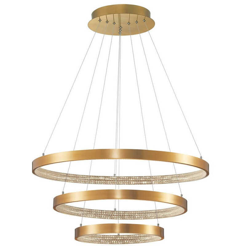 Merano Clara Plafoniera LED Integrata a Sospensione Oro Antico Ottone Alluminio LED 112W 4731Lm 3000K | Finitura: oro antico | Materiale: alluminio, acrilico | Classificazione IP: IP20 | Altezza: 150cm | Lunghezza: 80 cm | Tipo di lampada: LED integrato | Lampadina inclusa: Sì | Dimmerabile: Sì | Kelvin: 3000 K | Lumen: 4731lm | Peso: 5,1 kg | Potenza (massima): 112 W