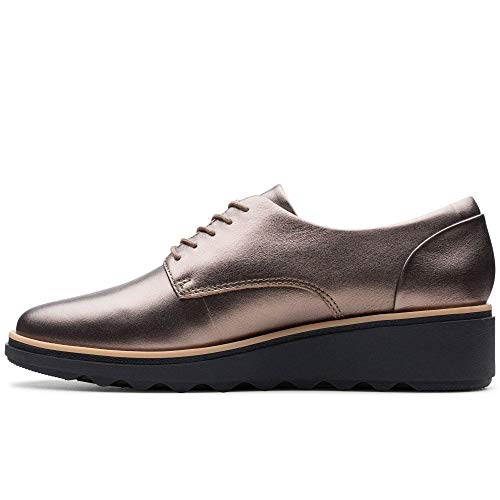 Clarks Sharon Noel Womens Lace Up Low Wedges 38 EU Pebble Metallic