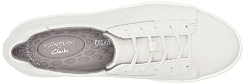 Clarks Women's Layton Lace Sneaker, White Leather, 5