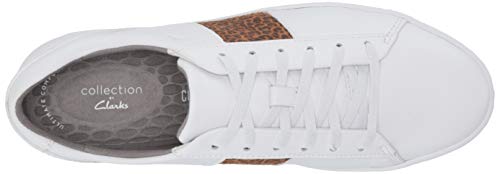 Clarks Women's Pawley Rilee Sneaker, White Leather/Leopard Combi, 5.5M