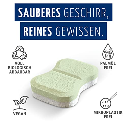 Nessuna plastica/microplastica: le nostre pastiglie per lavastoviglie sono confezionate in una custodia brevettata biodegradabile e idrosolubile in PVA, che non deve essere rimossa prima del risciacquo