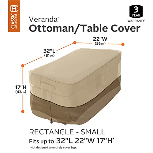Classic Accessories Copertura per ottomana/tavolinetto Rettangolare da Giardino, Piccola (S), Veranda