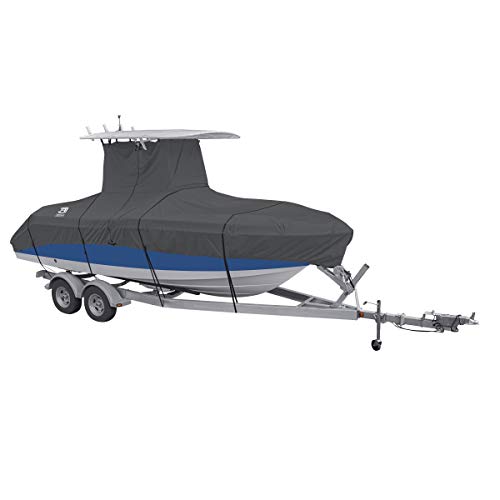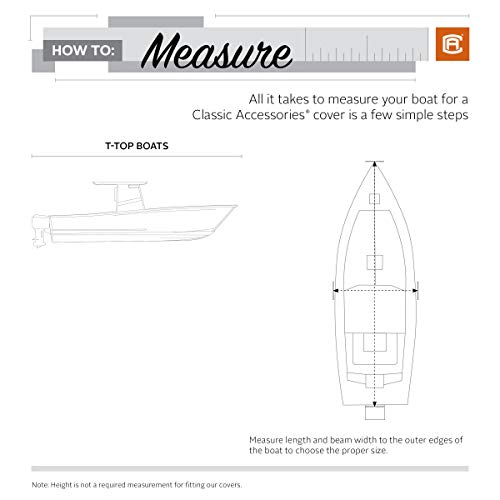 Copertura per barca: adatta a barche a t-top 17' - 19' L, larghezza del fascio fino a 252 cm W, taglio completo per consentire spazio extra per accessori come binari di prua e luci di marcia