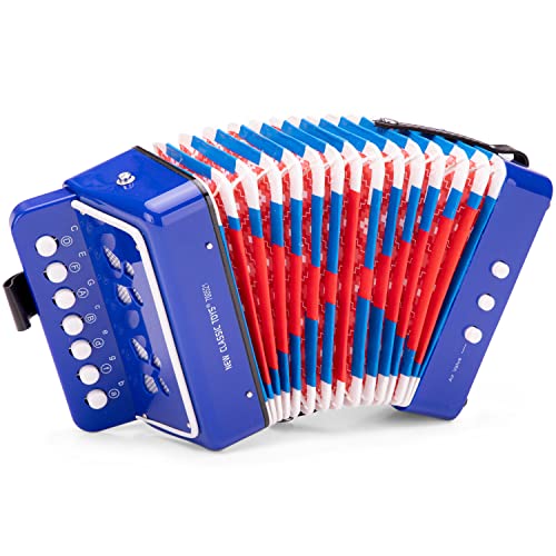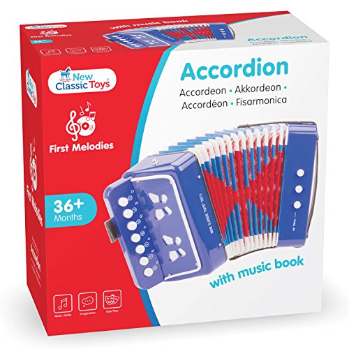 New Classic Toys Accordion Blue with Music Book, Multicolore, Fisarmonica blu, 10056