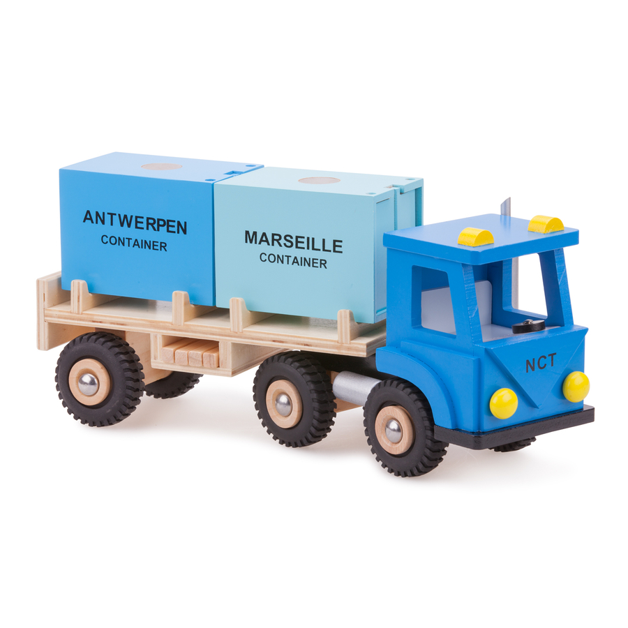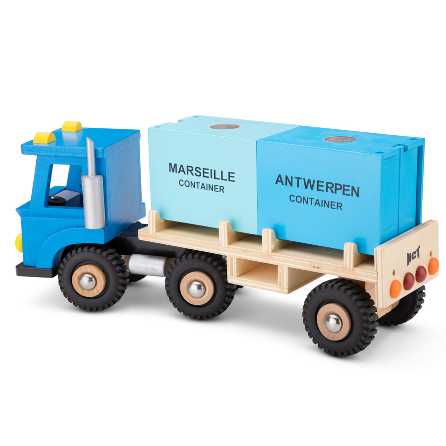Il camion viene utilizzato per trasportare un totale di 2 container. Tutti i prodotti appartenenti al porto si integrano tra loro e sono adatti per il sollevamento dei container sia con la gru che su strada o via mare. New Classic Toys offre giocattoli che contribuiscono allo sviluppo positivo del bambino. La sicurezza e la gioia nel gioco sono al primo posto. Tutti i prodotti di New Classic Toys soddisfano le norme di sicurezza europee per i giocattoli. La nostra gamma di giocattoli comprende prodotti realizzati con materiali onesti e durevoli. Con New Classic Toys Il gioco tradizionale viene trasmesso alla generazione successiva. In questo modo, contribuiamo a garantire che il gioco sia educativo e prezioso. Dettagli del prodotto: Dimensioni (lunghezza x larghezza x altezza): 40 x 12 x 16,5 cm Compresi 2 conteiner Materiale: Legno Età: a partire da 3 anni Attenzione Non adatto a bambini di età inferiore ai tre anni. Contiene piccole parti che possono essere ingerite. Rischio di soffocamento!