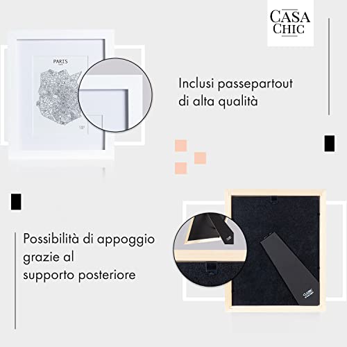 Classic by Casa Chic - Cornice 20x25 cm - Passepartout per Foto 13x18 - Vetro Temperato - Legno - Bianca