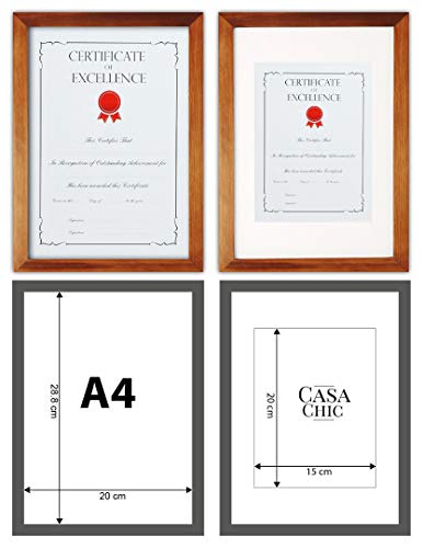 Classic by Casa Chic - Cornice A4 - Marrone Rustico - Passepartout per Foto 15x20 cm - Vetro Temperato - Legno