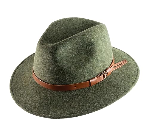 Classic Italy - Cappello Fedora Feltro Ripiegabile Idrorepellente Classique Traveller - Size 62 cm - Vert-Chine