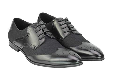 Classic Leather Faux Uomo Tweed Mix Two Tone Brogue Scarpe Stringate Formato 6 7 8 9 10 11 11,5 [A1915H-BLACK-42]