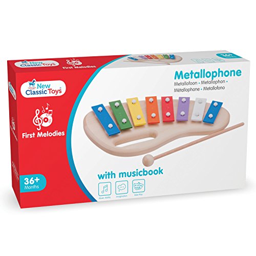 New Classic Toys Metallophone (8 Bars) with Music Book, Multicolore, 8 Bar, 10210