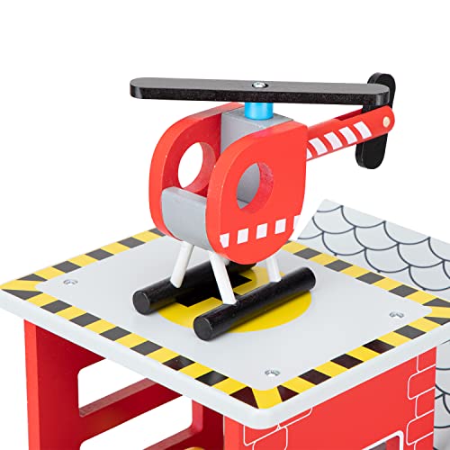 Caserma dei pompieri su due piani, con un camion, 2 pompieri e 1 elicottero